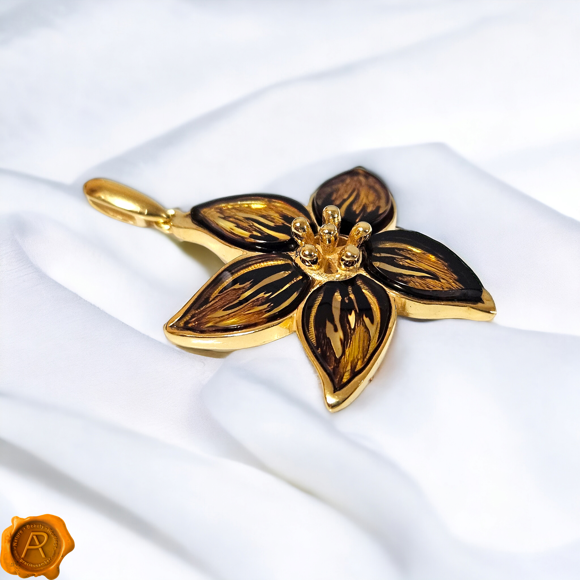 Nature and beauty combined with a finely detailed carved honey Baltic Amber flower pendant set in 925 Hallmarked Silver and dipped in 18K Gold. 5mm bail space allows adding a necklace of your choice. Hand-carved to perfection it will make a meaningful nature-inspired gift or a wonderful love token for yourself or your special someone. Comes beautifully presented in our signature luxurious grey charcoal Precious Amber jewellery gift box. Order yours today and enjoy the compliments you will receive!