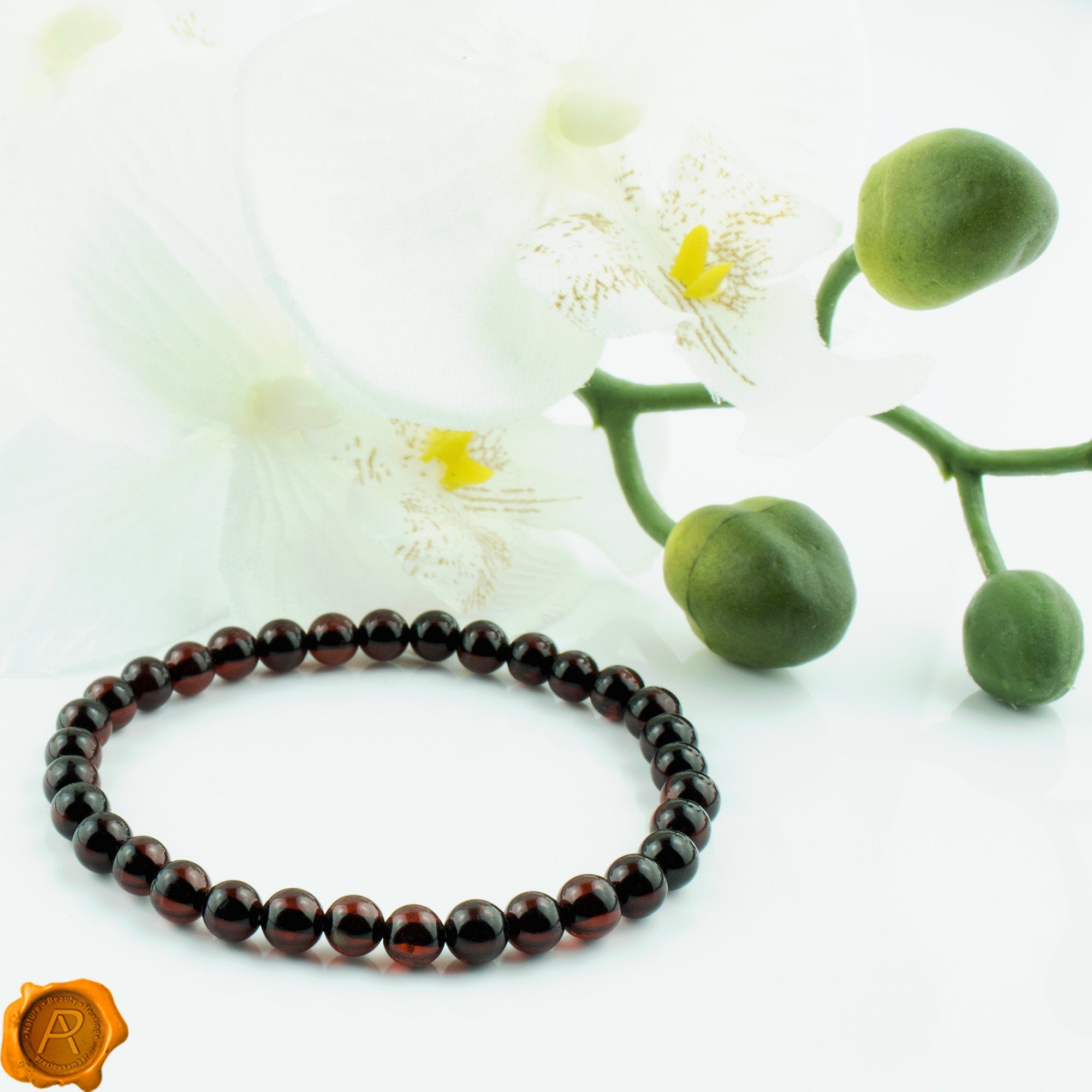 Nature and beauty combined with a minimalist-style elastic Amber bracelet. Beholds supreme quality black cherry Baltic Amber dainty beads. Elastic thread ensures secure and carefree wear. Handcrafted to perfection this delicate Amber bracelet will make a meaningful nature-inspired gift or a wonderful love token for yourself or your special someone. Comes beautifully presented in our signature luxurious grey charcoal Precious Amber jewellery gift box. Order yours today and enjoy the compliments you will receive!