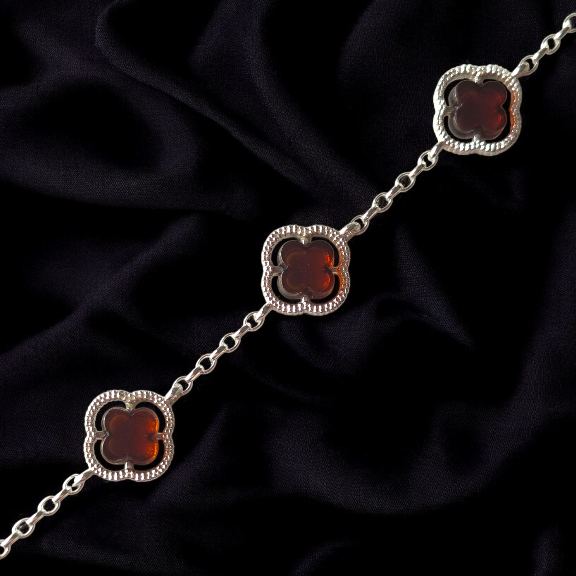 Four Leaf Clover Cherry Amber Silver Bracelet
