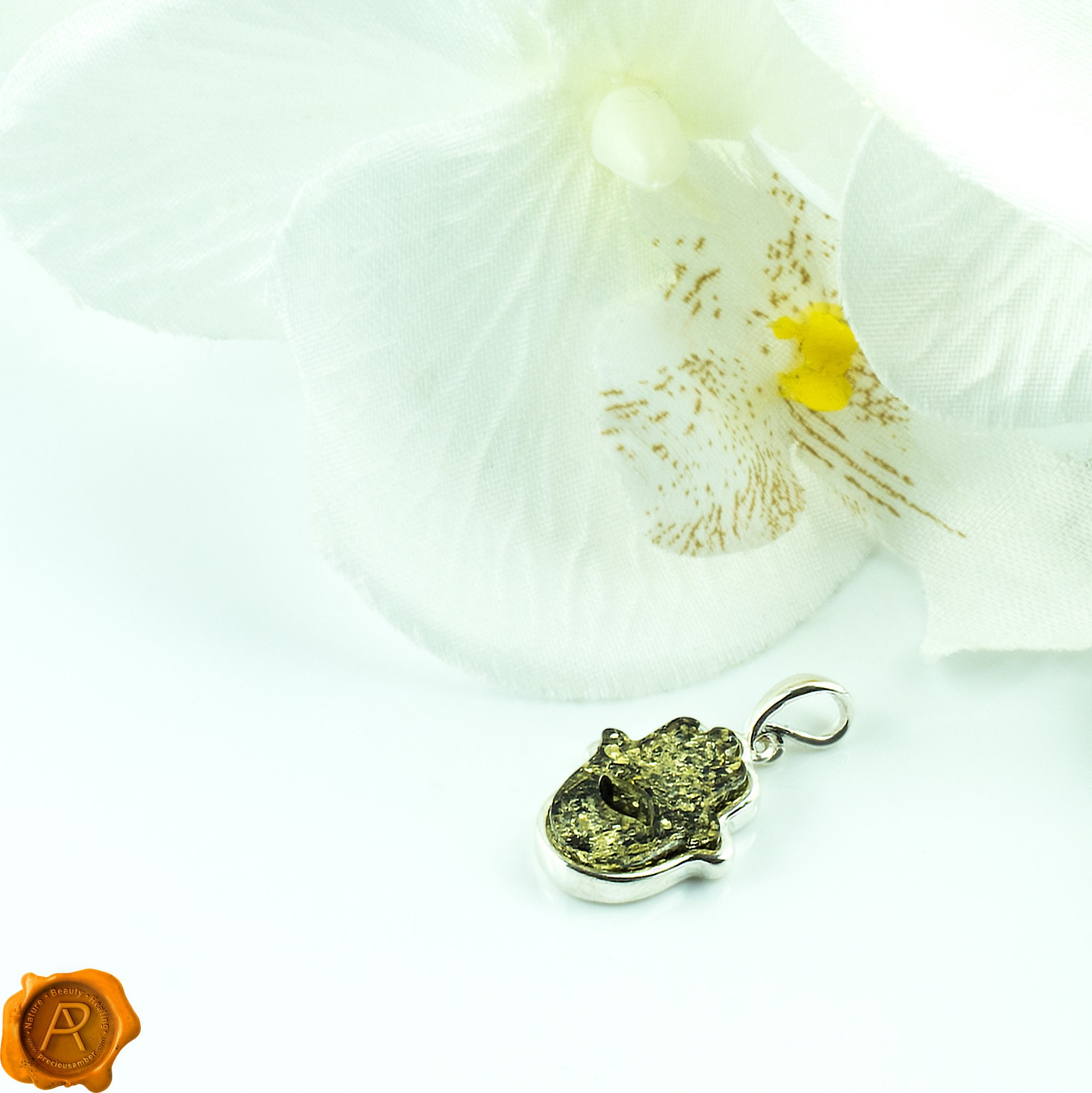 The iconic Hamsa Hand or Hand of Fatima is one of the oldest symbols in history. This protective symbol brings luck, health, happiness and good fortune, warding off evil and negative feelings. A Hamsa facing upwards acts as a talisman against evil and any malicious intent. Additionally, it protects against any negative thoughts you may have about yourself and others. This charm is perfect when performing rituals, exercising meditation practices, or simply when you want to wear a bit of magic—featuring rare green Baltic Amber set in 925 hallmarked silver. Spring ring closure ensures secure and carefree wear. Handcrafted to a standard of perfection, this timeless Amber eye candy will make a meaningful gift or just a wonderful love token for yourself or your special someone. Wrapped up with love in a luxury gift box.