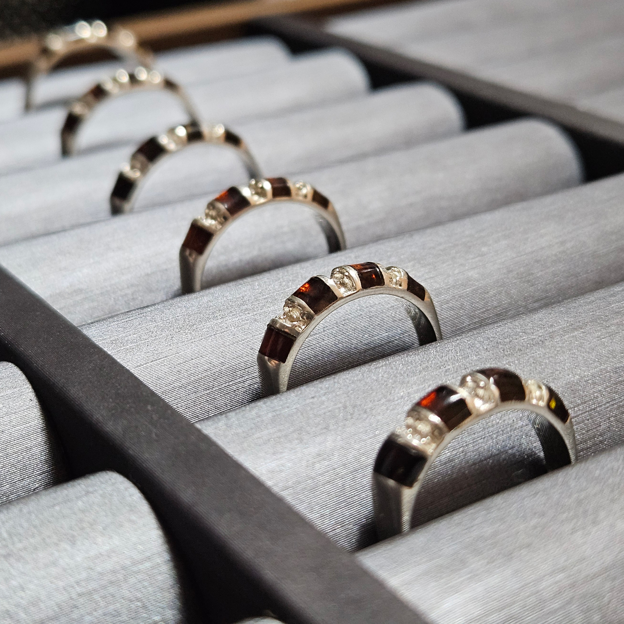 • The delicate silver carving work adorning the band adds an element of intricacy and refinement. Whether worn as a standalone statement piece or paired with other accessories, this ring is sure to elevate any ensemble with its understated sophistication. Comes beautifully presented in our signature luxurious grey charcoal Precious Amber jewellery gift box.